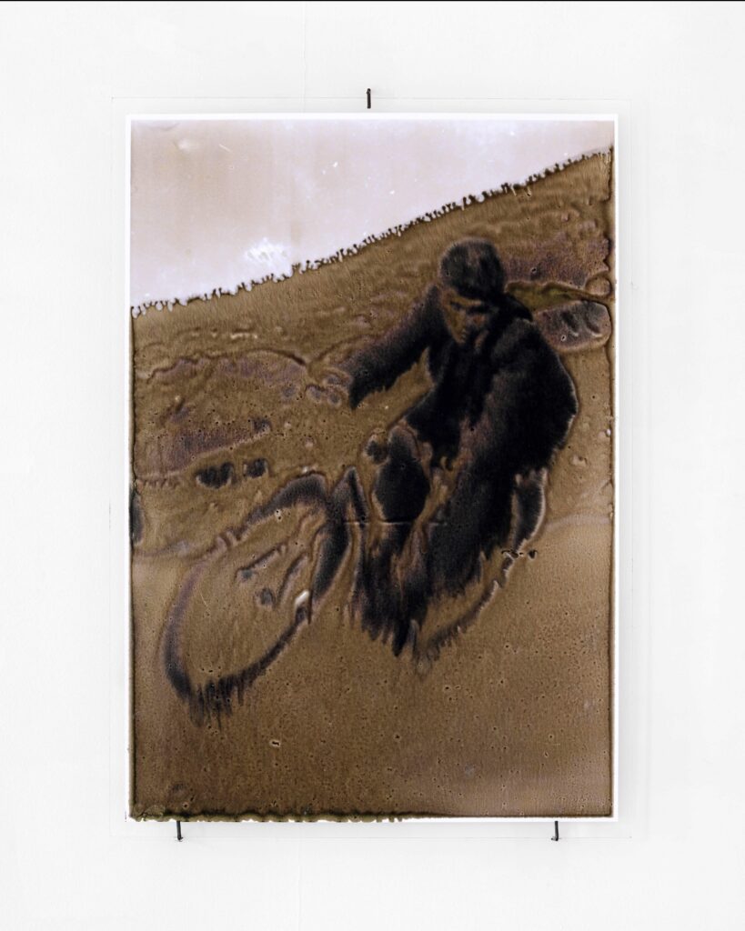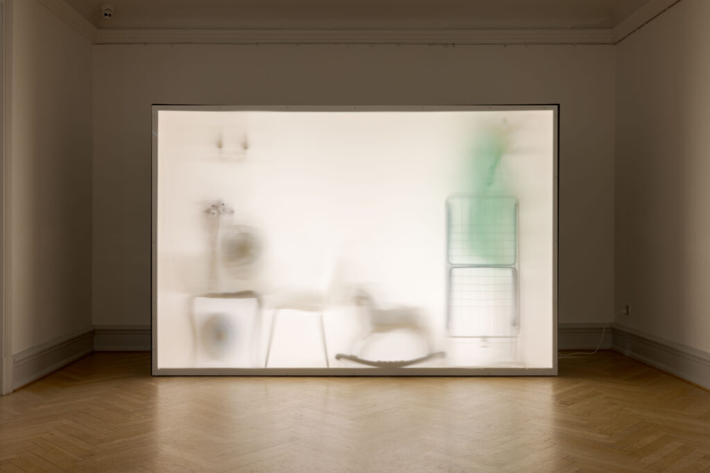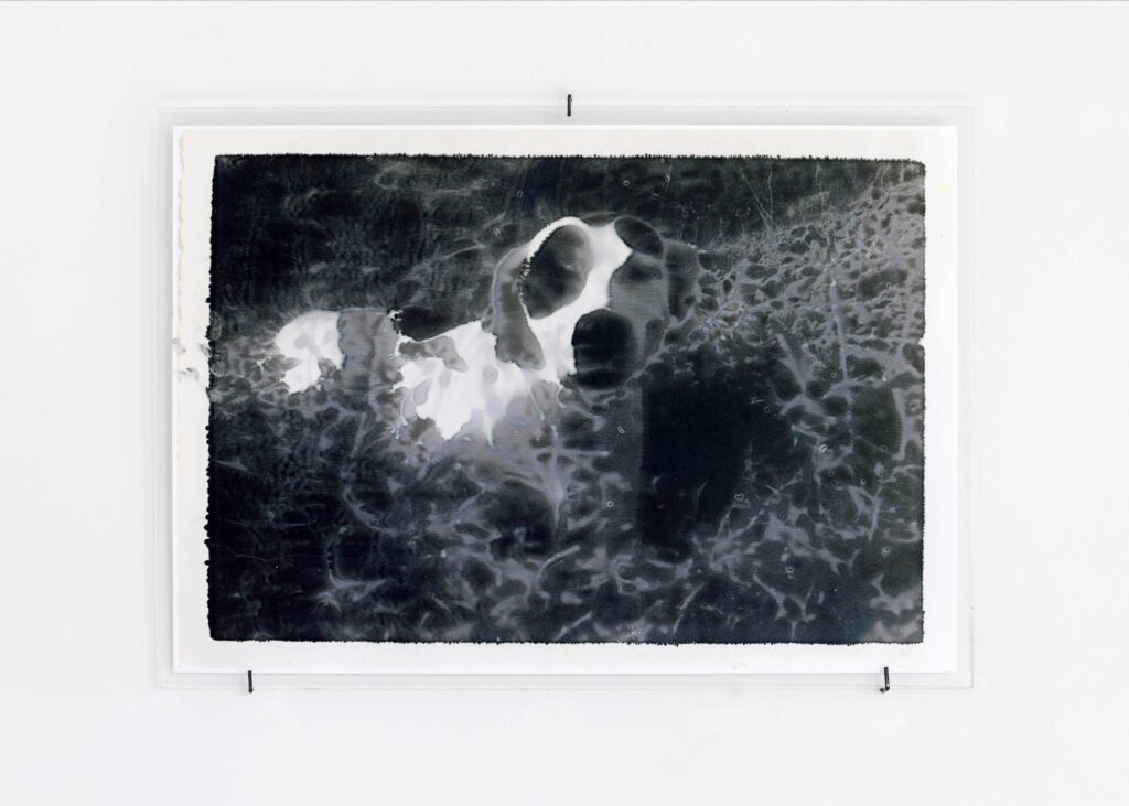 The grandmother’s own photographs of her brother on a bicycle, her dog Lampo, and her house have been scanned and printed on the back of photo paper so that the toner and motifs become blurred, and in 9:15 pm we see only shadows of objects. In modern Italian, vivavoce refers to the speaker function on phones, but in the exhibition, it is especially the etymological meaning ‘from mouth to mouth’ that is highlighted. Just like the title of the exhibition Vivavoce invites both a direct and indirect interpretation, the works offer a situated, material experience, at the same time as they open up an imaginary space related to the experience.